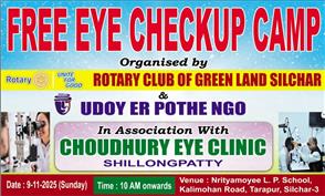 Rotary Club of Greenland Silchars free eye camp is a humanitarian i. . .